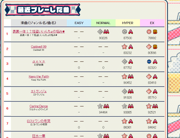腕前はぼちぼち維持出来たら…。速度変化に弱くなり暗澹たるスコアな反面、レベル36~8の曲を新しくフルコン出来たりもして、3歩進んで2歩下がるような状態なのですよ。地力を付けて参りたいね。