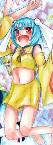 お絵描きもしてました。創作ブログの新TOPこと、樂夏ちゃんとお友達。アナログ水彩で。