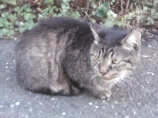 通り道には変わらずネコチャンがいます。この子は道の端っこでドーンと座ってたキジトラちゃん。真ん中よりマシとはいえ、ここ通学路ですよ警戒した方がいいよ。