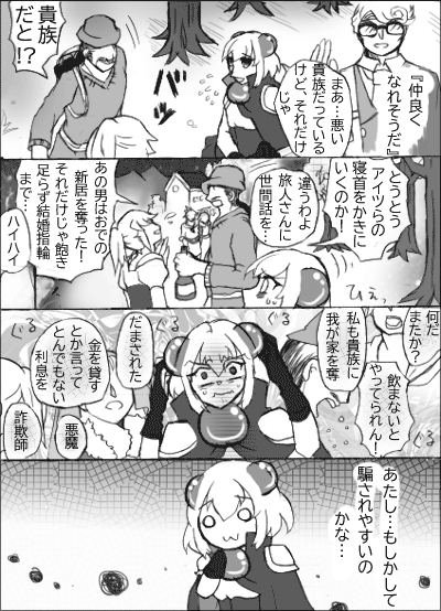 村人たちの声にたじろぐつび。思わずにょろーん顔にもなってしまうってものですよ(ネタが古い)