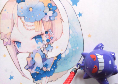 こちらはお世話になってるアリさんに描いて頂いたSD魅莢様と、友人から頂いたゲンガーのストラップ(゜▽゜*)かわいいかわいい♪