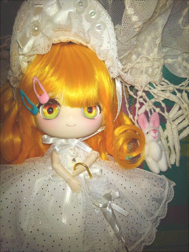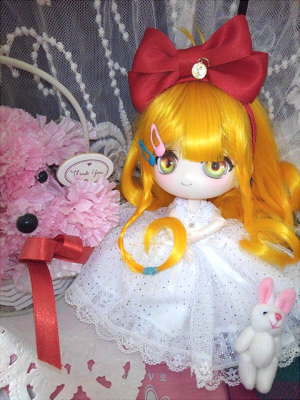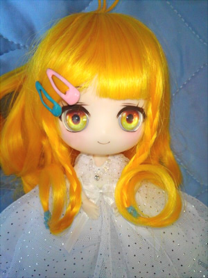 体はオビツ11サイズ、でもウィッグは8インチがピッタリというデフォルメ巨頭タイプのキャンディドール。アニメちっくなアイやメイクがめちゃめちゃ可愛くて、一目惚れでしたvV