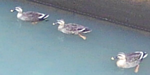 カルガモの群れがいてビックリしましたΣ(゜□゜) 写真に収まったのは3羽ですけども、もっといたんですよ。6、7羽ぐらい。