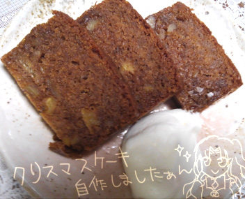 食べる時には少しあたためて、生クリームを添えました。しっとり生地にくるみの触感が加わって美味しかったですよ。家族にも好評でした^^ そう、クリスマスは家族と過ごすもの!!(力説)