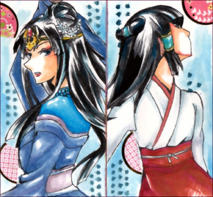スレンダー巫女姉妹(?) もう1人血縁者を入れたイラストを、創作ブログの方で上げております。