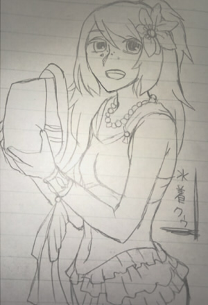 まずは水着クゥをノートにらくがきしました。夏ですからね!