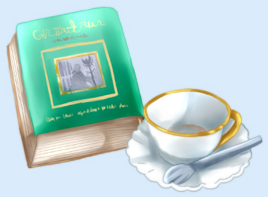 表紙2-3にも印刷するかどうか、考え続けておりまして。一応ティーカップと本のイラスト描いたものの、使わずに終わるかもしれないです。ので、先んじて上げちゃおう。