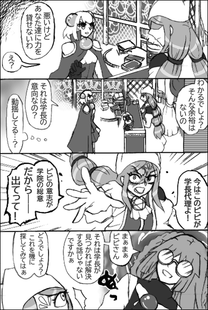 突然キレる自称・学長代理に、ありえない角度から止めにくる眼鏡と、アクの強いやつらばかりです。つび「法術学院は魔境なの!?」