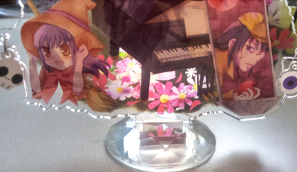 ハロウィンに作ったでかアクリルスタンド(ほぼアクリルイラストパネル)が、薄い台座だと不安定で……手のひら2つ分の大きさ&チャームもじゃらじゃらと付いてますので、しっかり支えられるものが欲しかったんですよね。
