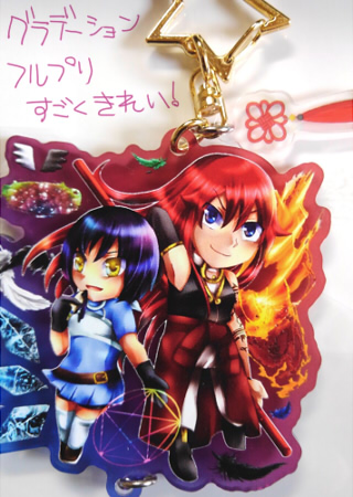 今回初めてフルプリントにしてみまして。透明感あり鮮やかで、すごくファンタジックに仕上がったので満足です! フォトショで描いた炎・氷のエフェクトも綺麗に印刷されてて感動(゜▽゜*)ワー