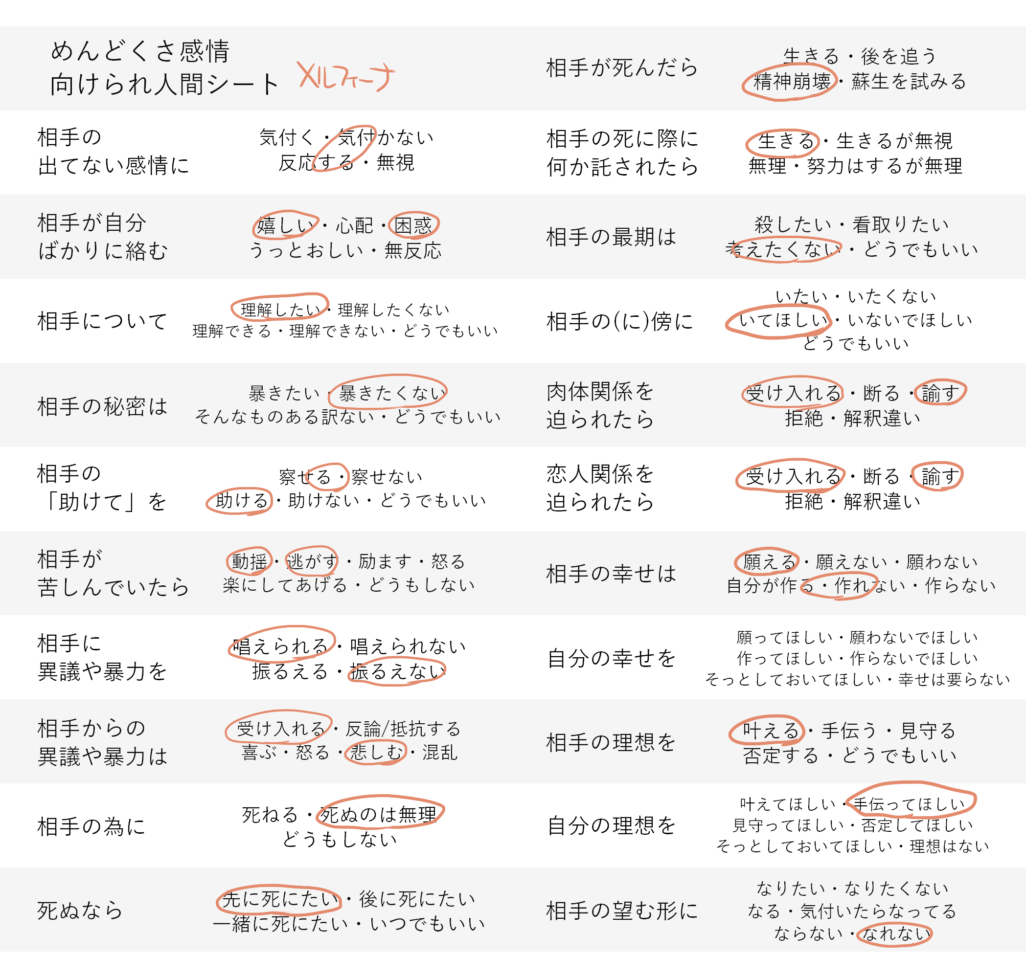 めんどくさいといえば。TRPG界隈でめんどくさ感情シートっていうのが流行しておりまして。創作キャラでも出来そうだったので、やってみました。姫路さんにも送りつけてます(いやいやいや)