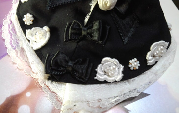 ドーリーテリアさんでは『ディーラー製』としか書いてなかったのですが、このバラの刺繍やビーズ使い、連なったリボン……恐らく黒月projectさんの作品なんだろうなって思います。