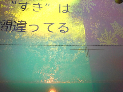 写真映りのせいで若干暗く見えてしまっておりますが、紙の色は普通に白で、オーロラカラーに偏光するフィルタみたいなのがかかってます。そのフィルタが強すぎて、写真にすると暗くなっちゃうのですね。アルミホイル(ギラギラ光る)の写真を撮ろうとすると明暗がくっきり出ちゃうのと似てる。