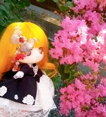 ひーちゃんとサルスベリ。気持ちお盆テイスト。