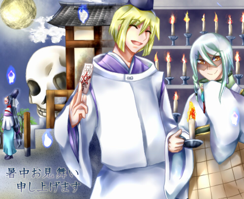 創作ブログの方で落書きはしてたのですが、一度ちゃんとした絵にしたいなと思って(+和製ホラーモチーフで描きたかったので)選びましたよ。がしゃどくろに人魂に、百物語のロウソクと好きなもの詰め込みました*