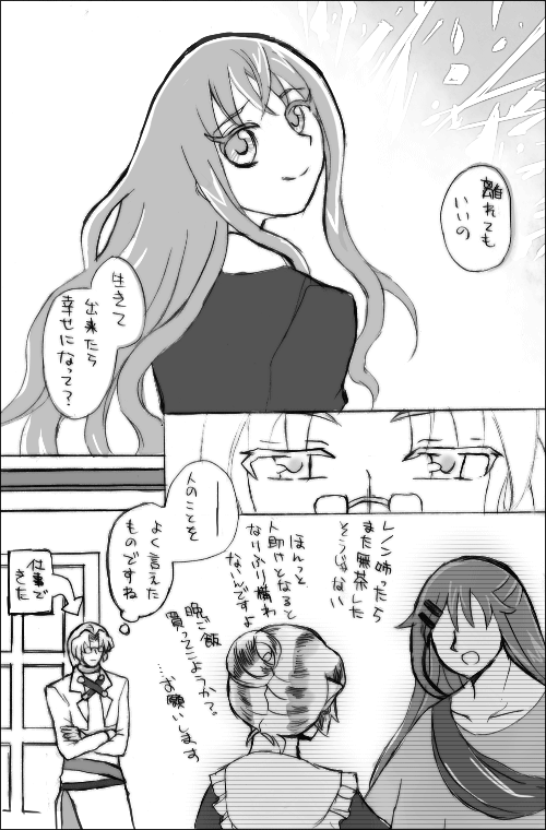かに座の期間ギリギリで間に合った? 間に合ってない? 最早そんなこと気にするレベルでなくアウト? な、掌編らくがきマンガです。先月に申してたのようやく形に出来たよー!><