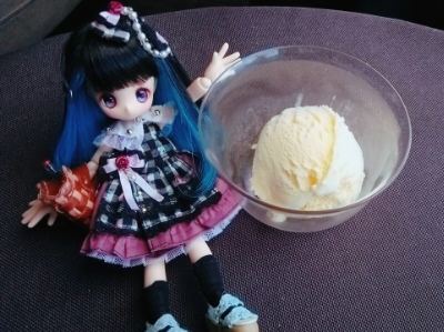 朝食のデザートは濃厚バニラアイスでした* ここら山間は酪農してるとこ多いから、そこのミルクを使ったのかなぁ。お迎えして1周年になる海弥さんと一緒にパシャリ。