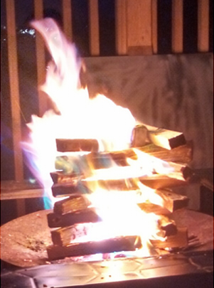 その後は焚き火して、炎を眺めながら夜景を楽しみましたよ。キャンプファイヤーってやつだね! 食品にも使われる添加物を使って、炎を色とりどり変えていく技術がすごかったです。