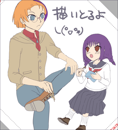 セーラー服着たベスティアリ(ベス子)と響一くんをお絵描き中です。