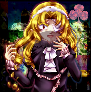 黄金の髪に血色の隻眼。常に黒基調のゴシックロリータ。左目は眼帯を縫い付け、封じている。
