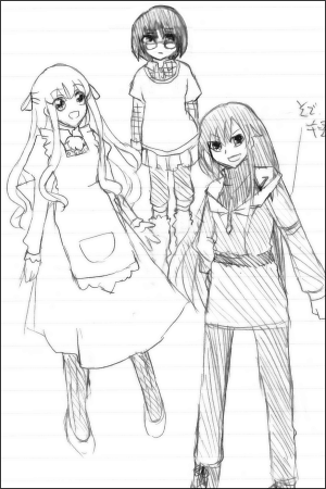 (右から)ロード姉さん・ベリルさん・レノンさんのきたない簡単ラフ。