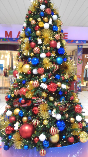 華やかで、見ているだけでもワクワクして参りますっ(>w<*) 特にカラフルな大きい玉のオーナメント、こういうツリーでしか見られませんから。ボーリング球ぐらいはあるんじゃないか…?