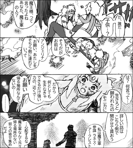 これにてまおーさまよ!第2章・血濡れた孤児院編、閉幕です。事件は終わり、登場人物たちはそれぞれの場所に落ち着く。モニカはああでしたが、アンジュも大概…こう、常識の枠に収まってくれませんね。