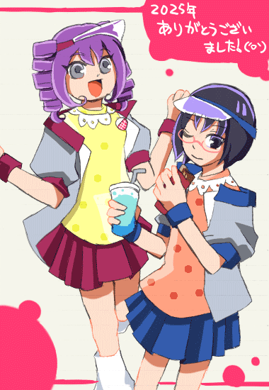 前回申したルリルプさんとベリルさん。ポップンミュージックJam&Fizz風のハンバーガー売ってそうなカジュアル服着て貰いましたん。ポップンパロとはちょと違うかも……若干メズマライザーっぽい? でもきっとベリルさんは食べるの専門でしょう(笑)
